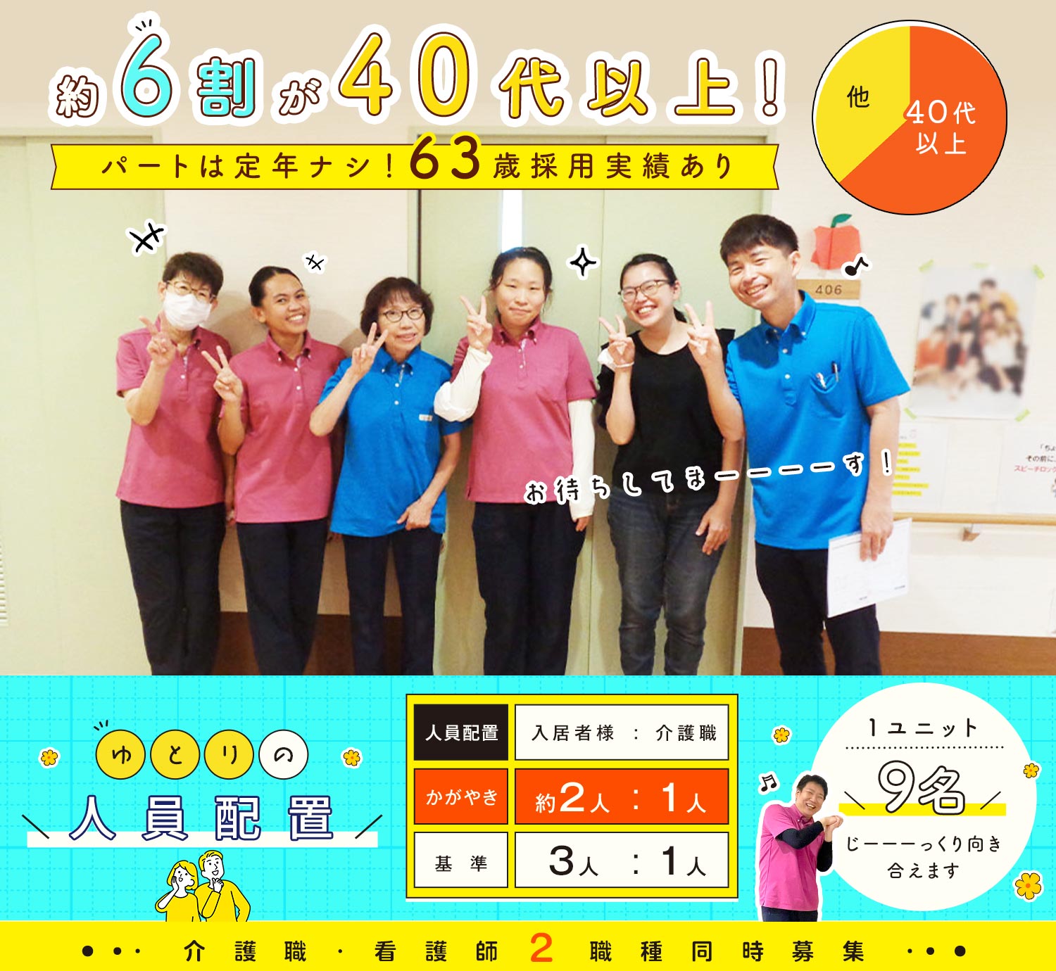 当施設では70~20代のスタッフが在籍しており、その6割以上が40代以上。