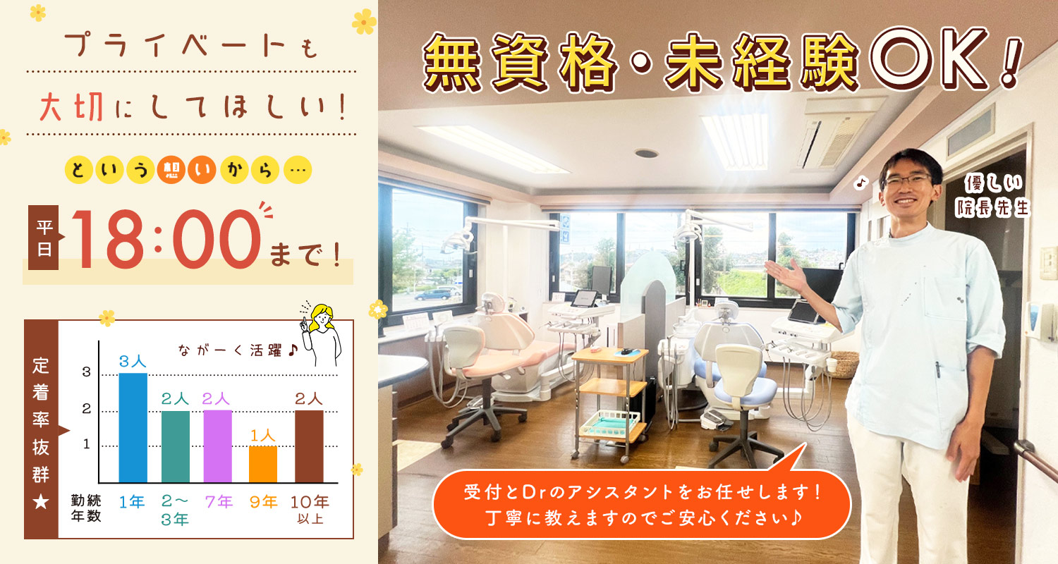 ※受付・歯科助手は常時3~4名体制で丁寧にお教えします。