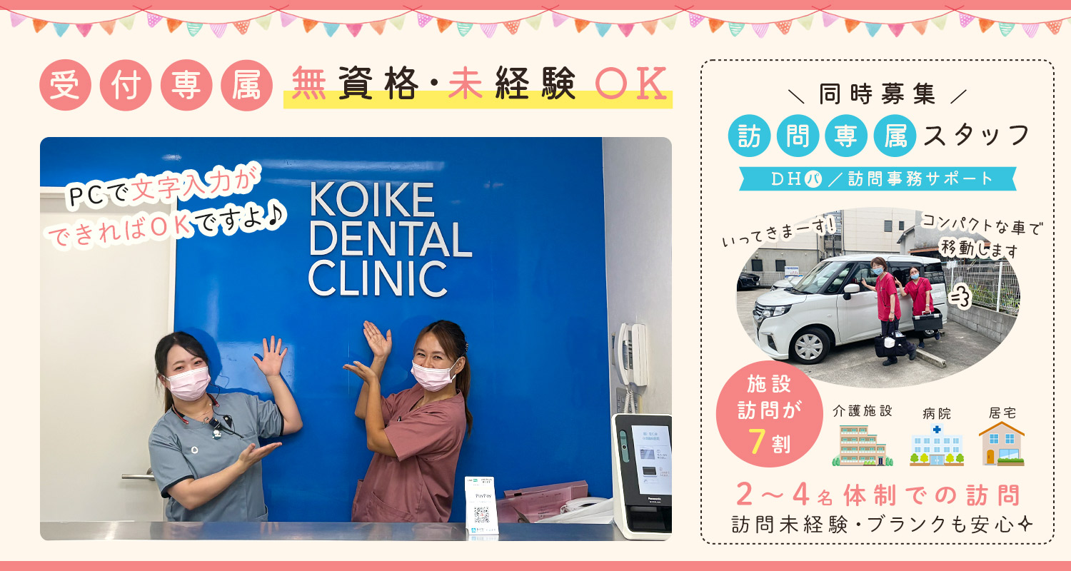 | 待 遇 | #昇給あり 年1回 交通費全額支給 厚生年金・雇用・労災保険・歯科医師国保 資格取得支援制度 セミナー・外部講習参加費補助制度 |