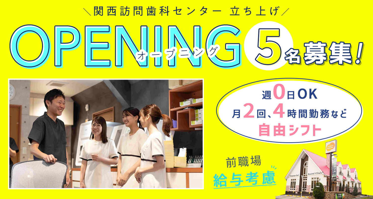 | 仕事内容 | 週0日からOKの登録歯科医師[パ] 介護施設や患者様のご自宅を定期的に訪問し、施設利用者様・患者様の診療・治療・予防処置等をお願いします。 ※フルタイムの場合、1日10件を目標に訪問(堺市内、大阪市内 etc…※エリアは在籍する医院による) ※歯科医師+歯科衛生士・歯科助手との2~3名チームでの訪問 #オープニングスタッフ 関西訪問歯科センター立ち上げに伴う募集 □□□ ※希望者は、院内診療との兼務もOK たんぽぽ会歯科は全院に技工室を完備しており、歯科技工士も常駐しています。 歯科技工士と密に連携を取り、患者様の意向に沿った補綴物を作製。 口腔内スキャナや3Dプリンタなどの活用で時間的ロスをなくし、患者様に安心・満足いただける治療を実現しています!  |
