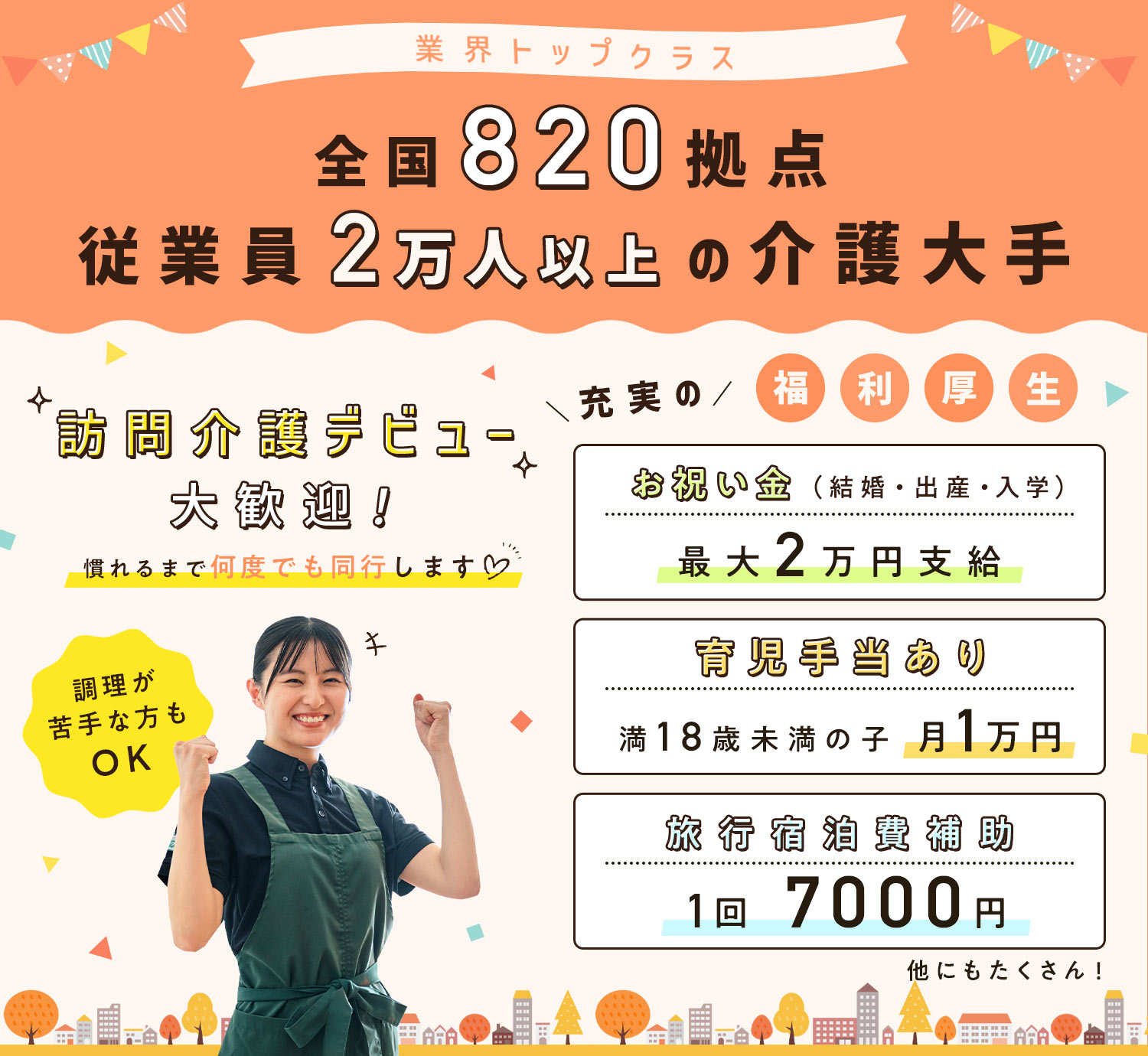 | 応募資格 | 介護職員初任者研修修了(旧ヘルパー2級)以上 #ブランクOK ※訪問未経験OK ※副業・WワークOK □□□ ※年齢不問!シニアやミドルも歓迎(60代活躍中) ※無資格の方は近隣のデイサービスで働きながら資格取得が可能。介護職員初任者研修修了を取得後、訪問介護ヘルパーとして活躍できます。 (詳細はTELにて/お気軽にお問合せください) |