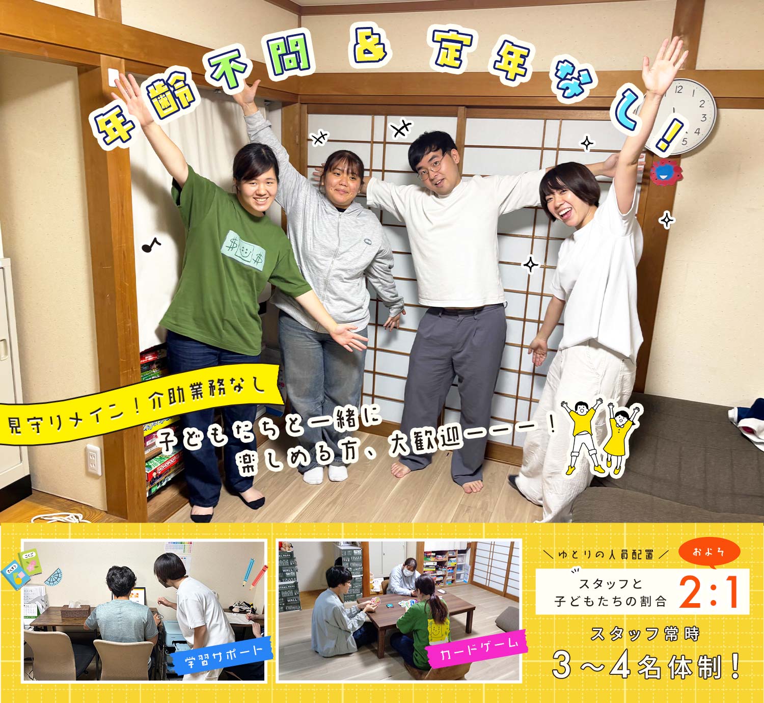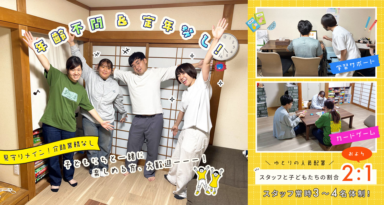 | 仕事内容 | 児童指導員/パート[パ] 不登校や障がいのあるお子様をお預かりし、勉強の見守りや楽しくお話、レクリエーション、保護者対応などをお願いします。 運動・介助業務は一切ナシ! 小学5年生~高校生のお子様(平均1日10名ほど)を、スタッフ4名ほどで見て頂きます。(午前:4〜5名/午後:5〜6名) ※お子様の人数は、午前は平均4~5名・午後は5~6名 ※ドライバーがいるので、送迎などの運転業務はナシ 週1~2回ほど行われるレクリエーションでは、ジャムづくりや山登りなど様々なことを実施しています。 レクリエーションの内容はお子様とスタッフで話し合って決めており、お子様からの「ここ行きたい!」やスタッフの「やってみたい!」が反映☆ |