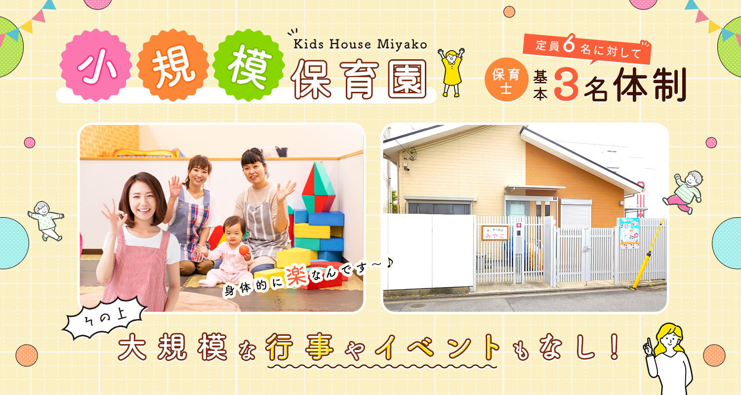 定員6名の小規模保育園で、0~3歳のお子さんを中心とした保育業務をお願いします。