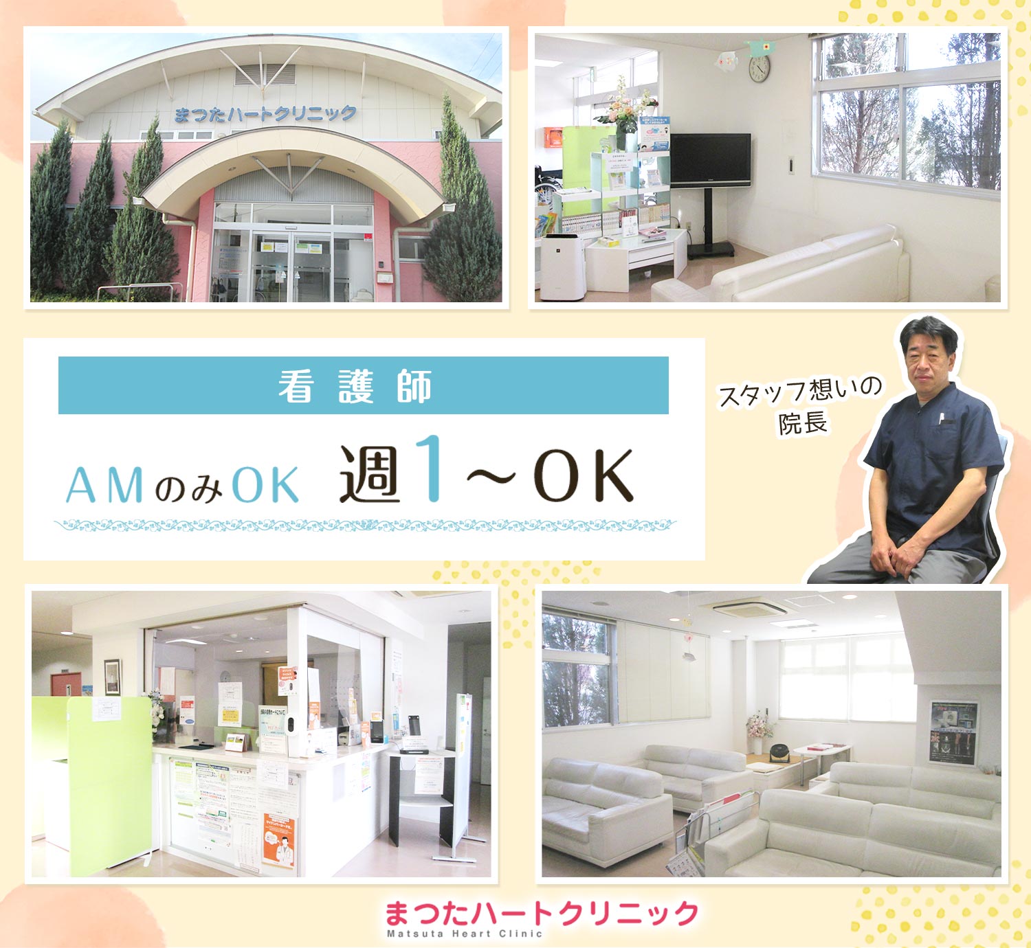 | 仕事内容 | クリニックの看護師/週1コマからOK[パ] 医師のサポートおよび、患者様への看護業務全般をお願いします。 □□□ ★チームワークの良い職場 30~50代まで幅広い年代が活躍中で、みんなが家事・育児などと両立できるよう“助け合い”の気持ちを持って働いています! そのため誰もが働きやすい環境で、3年5年と長く勤務してくださっているスタッフが多いんです◎  |