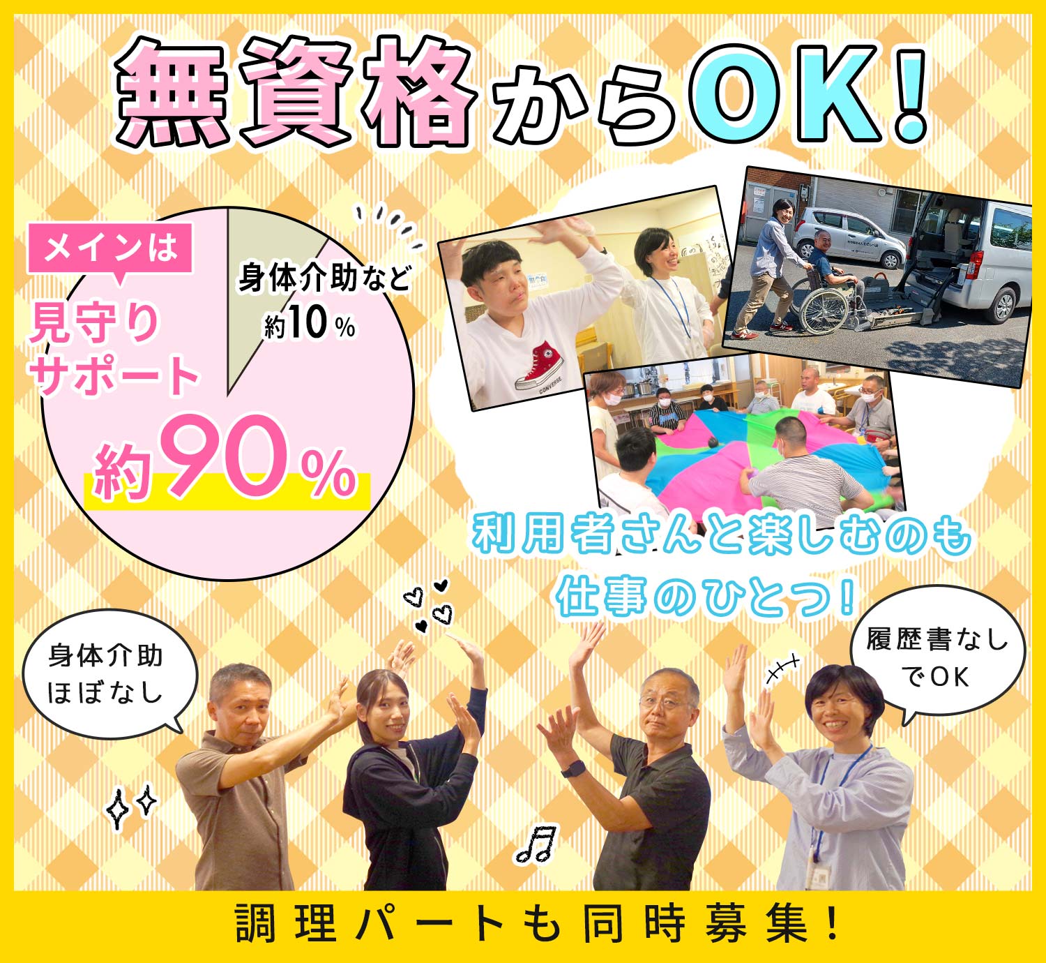 | 応募資格 | 無資格・未経験OK #ブランクOK ※家事程度の調理スキルがあればOK ※介護・福祉系の資格や経験も無くて大丈夫です! ※事務・飲食・美容師・販売・営業など、異業種からの転職歓迎 ※年齢不問!シニアやミドルも歓迎 |