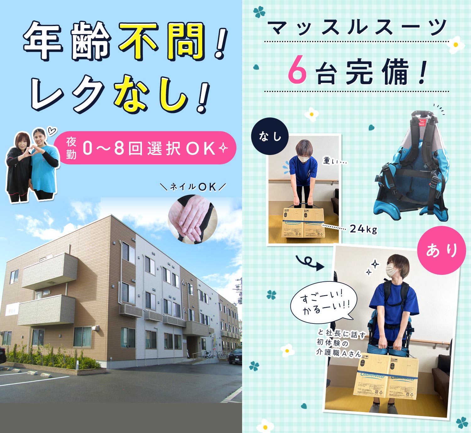 | 応募資格 | 介護職員初任者研修修了(旧ヘルパー2級)以上 実務未経験OK #ブランクOK ※年齢不問(シニアやミドルも歓迎) ※男女ともに歓迎 |