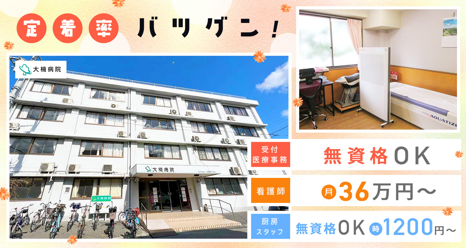 | 仕事内容 | 看護師[社] 病棟での看護業務をお願いします。 バイタルチェック、吸引、口腔ケア、食事や入浴の介助、カルテ記入など ※全45床 ◆当院では医師や看護師など様々な職種が垣根を越えて、チームで患者様をケアしています。いつでも相談しやすい体制を整えていますので、判断や対応に悩んだ時は気兼ねなく周りを頼ってくださいね。 |