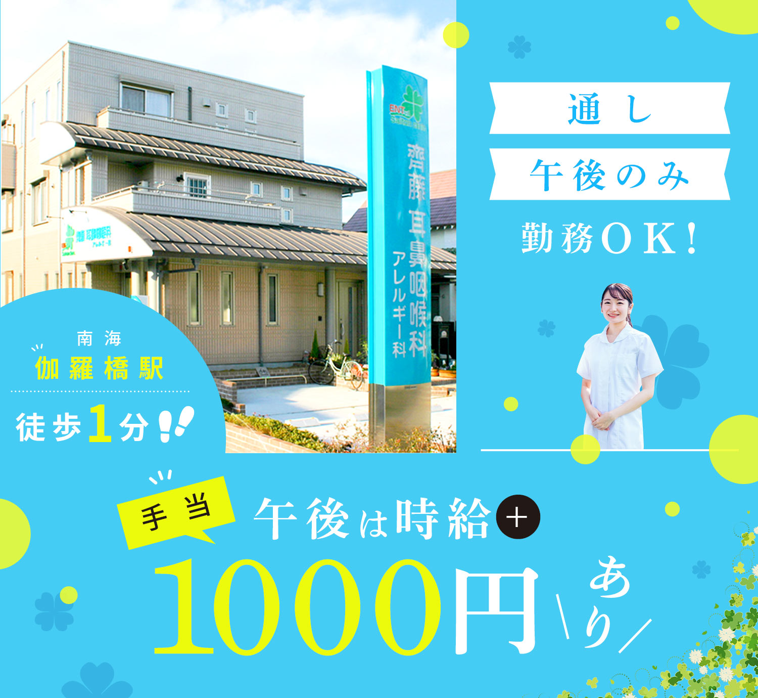 | 応募資格 | 正・准看護師 #ブランクOK(ブランク年数不問) ※耳鼻咽喉科の勤務経験のない方も歓迎 |
