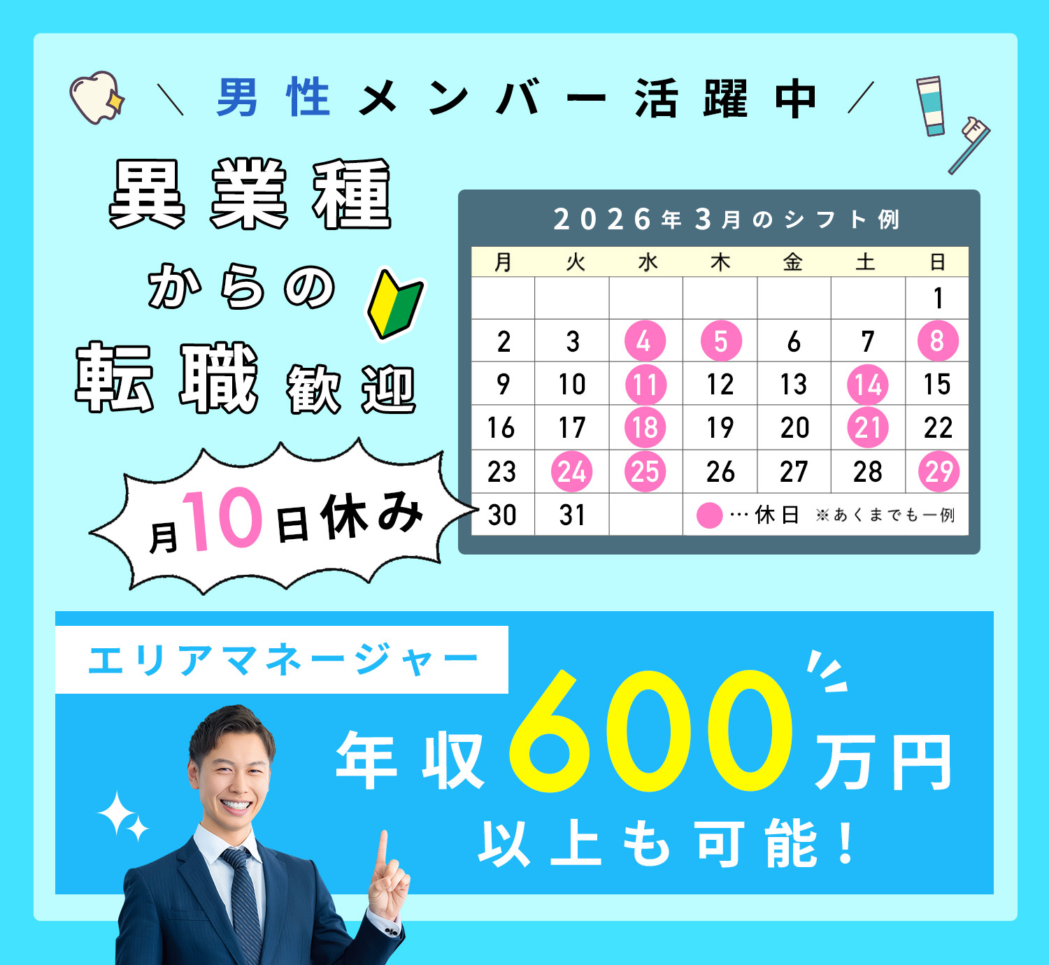 歯科・医療業界の経験や、マネージャー・管理職としての経験も不問!