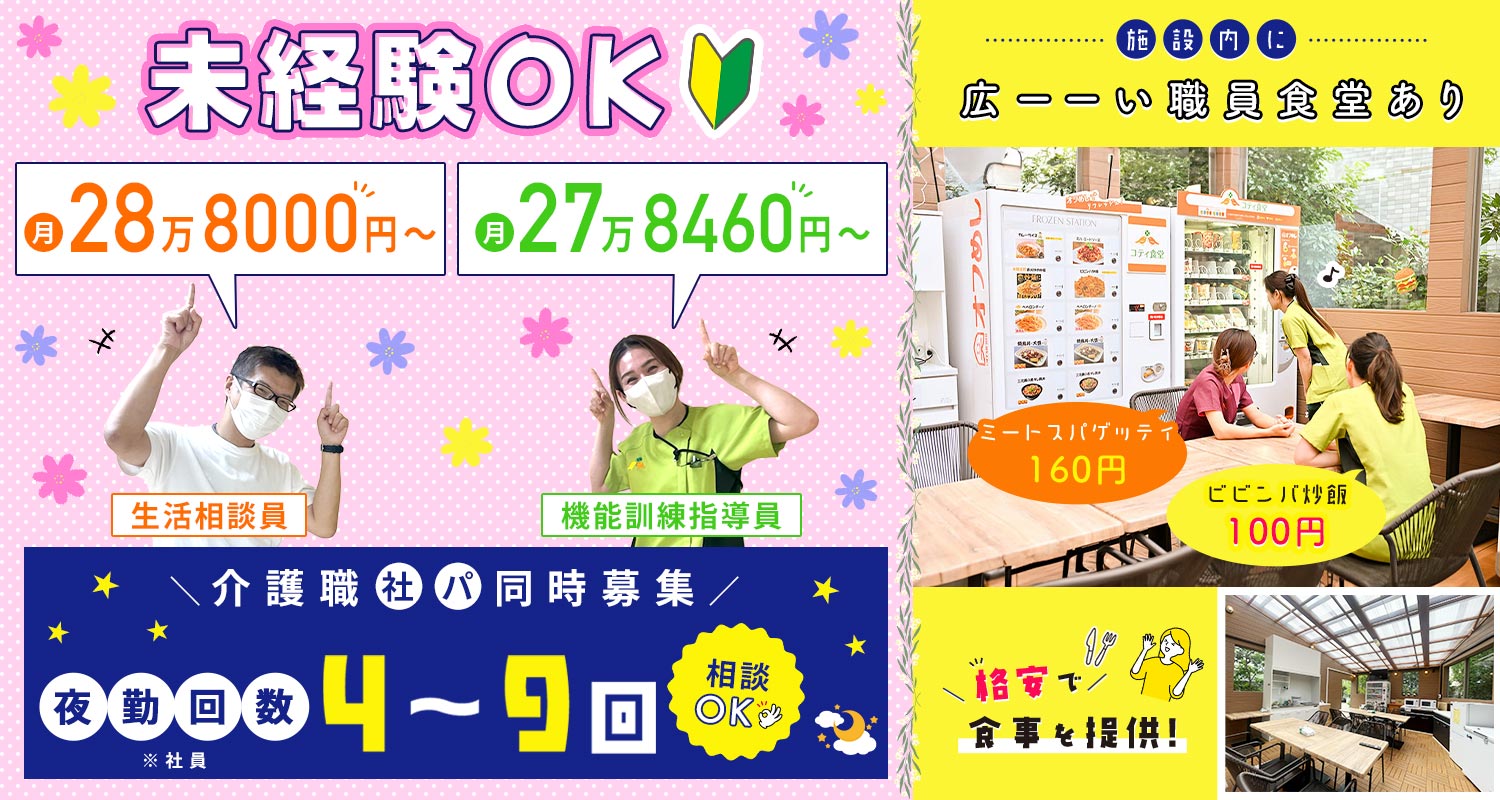 | 待 遇 | #賞与あり 年2回 #昇給あり 年1回 社会保険完備 3月に決算報奨金あり 交通費支給 (上限5万円) バイク・自転車通勤OK 外部講習参加支援制度 (積極的に参加OK) ※参加費・交通費など補助あり 退職金制度 資格取得支援制度 (費用補助 ※規定あり) 研修制度 職員食堂『コティガーデンカフェ』あり スタッフルーム完備 パウダールーム完備 定年制あり (一律60歳) 再雇用制度あり (65歳まで) |