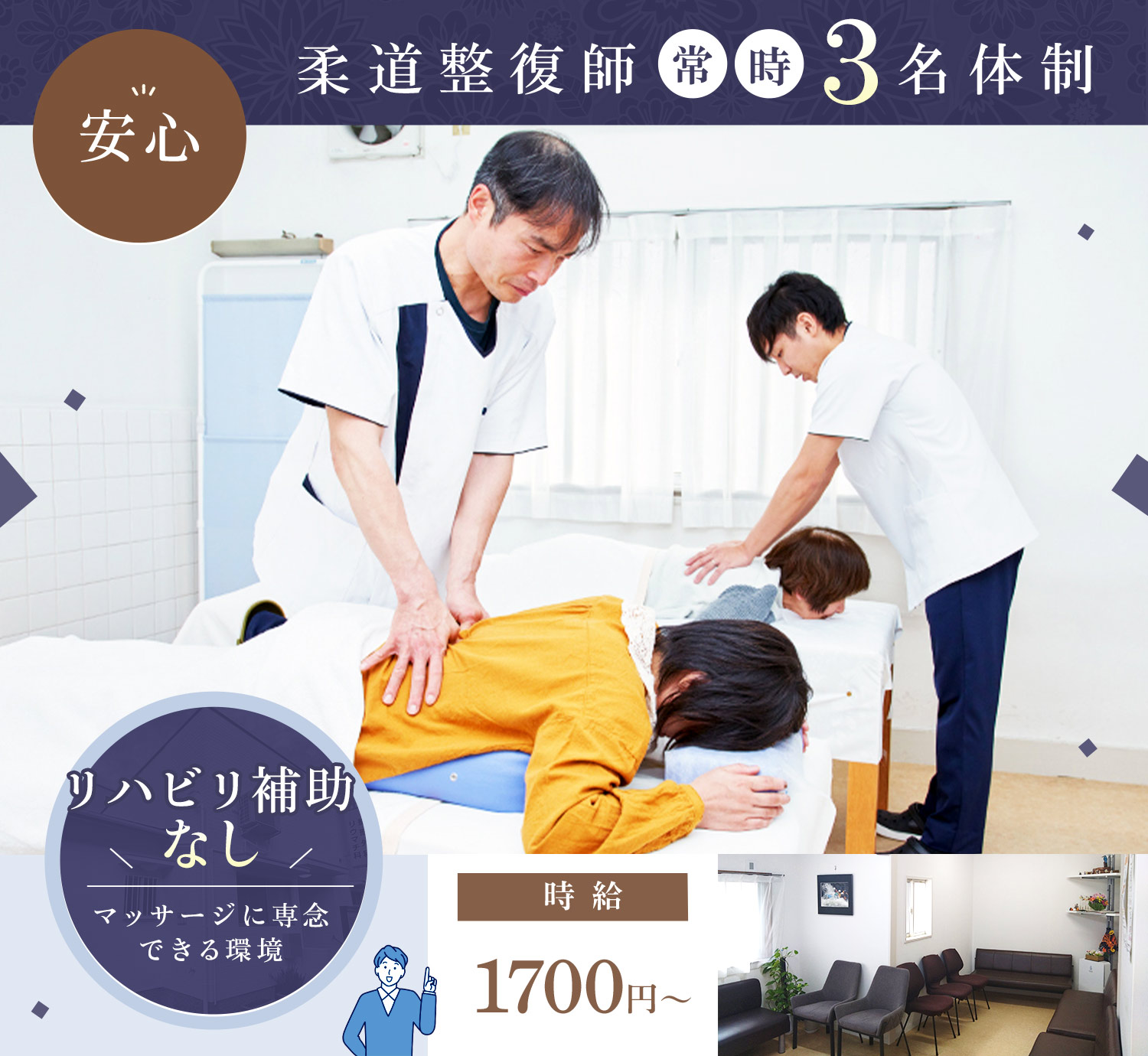 柔整師は常時3名体制!