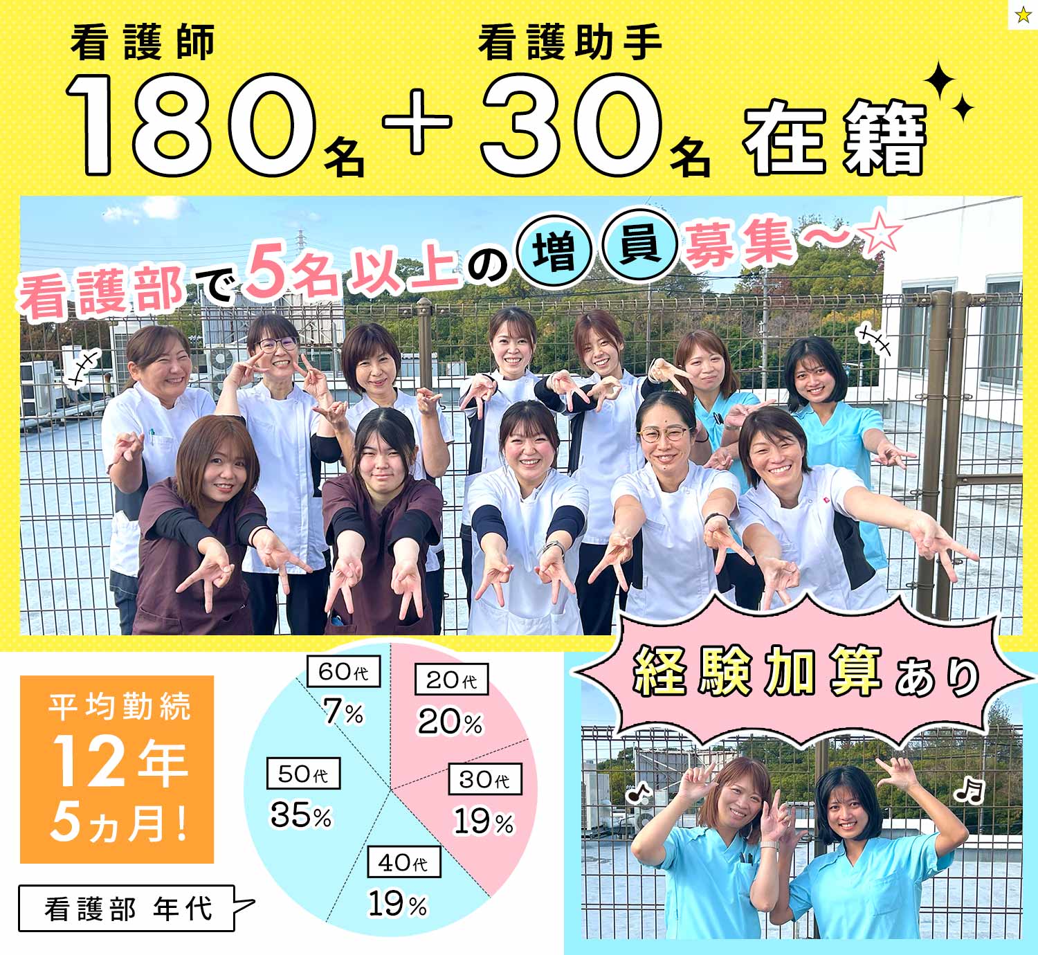 | 仕事内容 | 看護師[社] 急性期病棟もしくは地域包括ケア病棟での看護業務全般。 医師のサポートおよび、患者様への看護業務全般をお願いします。 ※配属先は適正・希望を考慮 ※急性期の看護体制は「7:1」で、多くの看護助手と協力しながら患者様一人一人に手厚い看護を行っています! ※看護師はパート勤務もOK ご希望の方はお気軽にご連絡ください! |