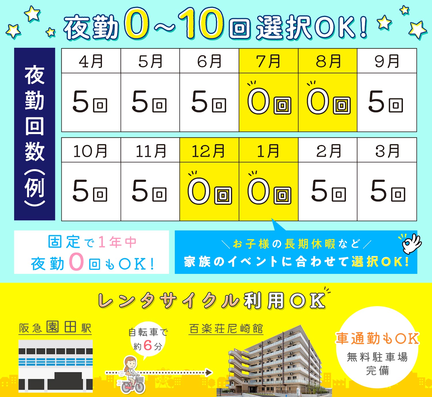 ※夜勤は月0~10回相談OK!夜勤回数は月ごとに変更OK!