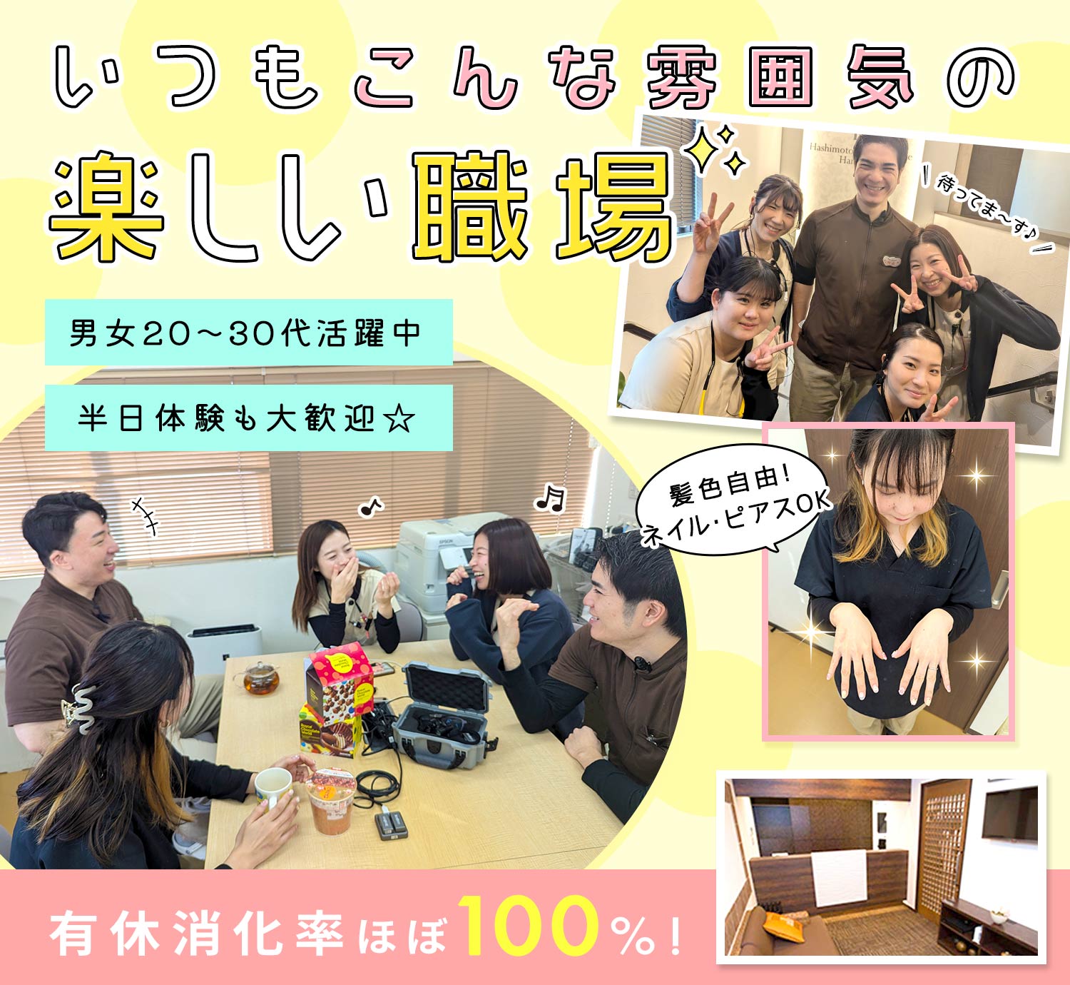 有給取得もしやすく、みんなほぼ100%消化しています☆