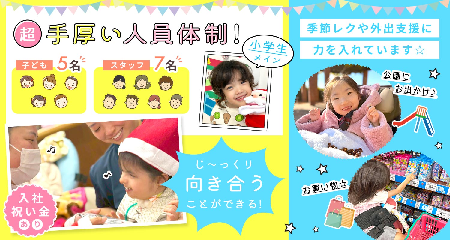 【手厚い人員体制/お子さんの人数+1~2名の職員でケア】