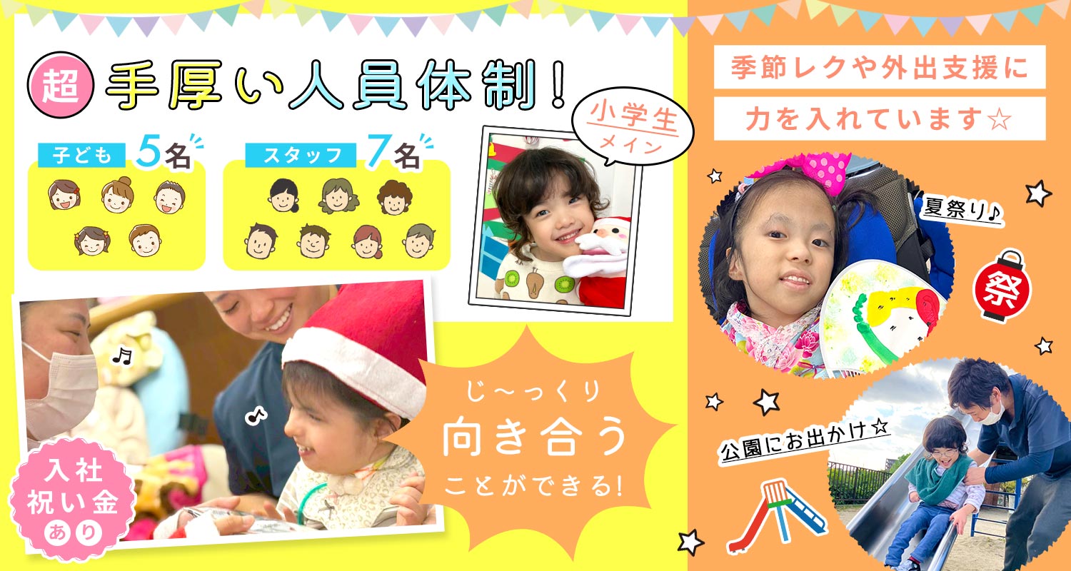 【手厚い人員体制/お子さんの人数+1~2名の職員でケア】